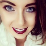 Heb gekleurd haar, blauwe ogen en een slank lijf